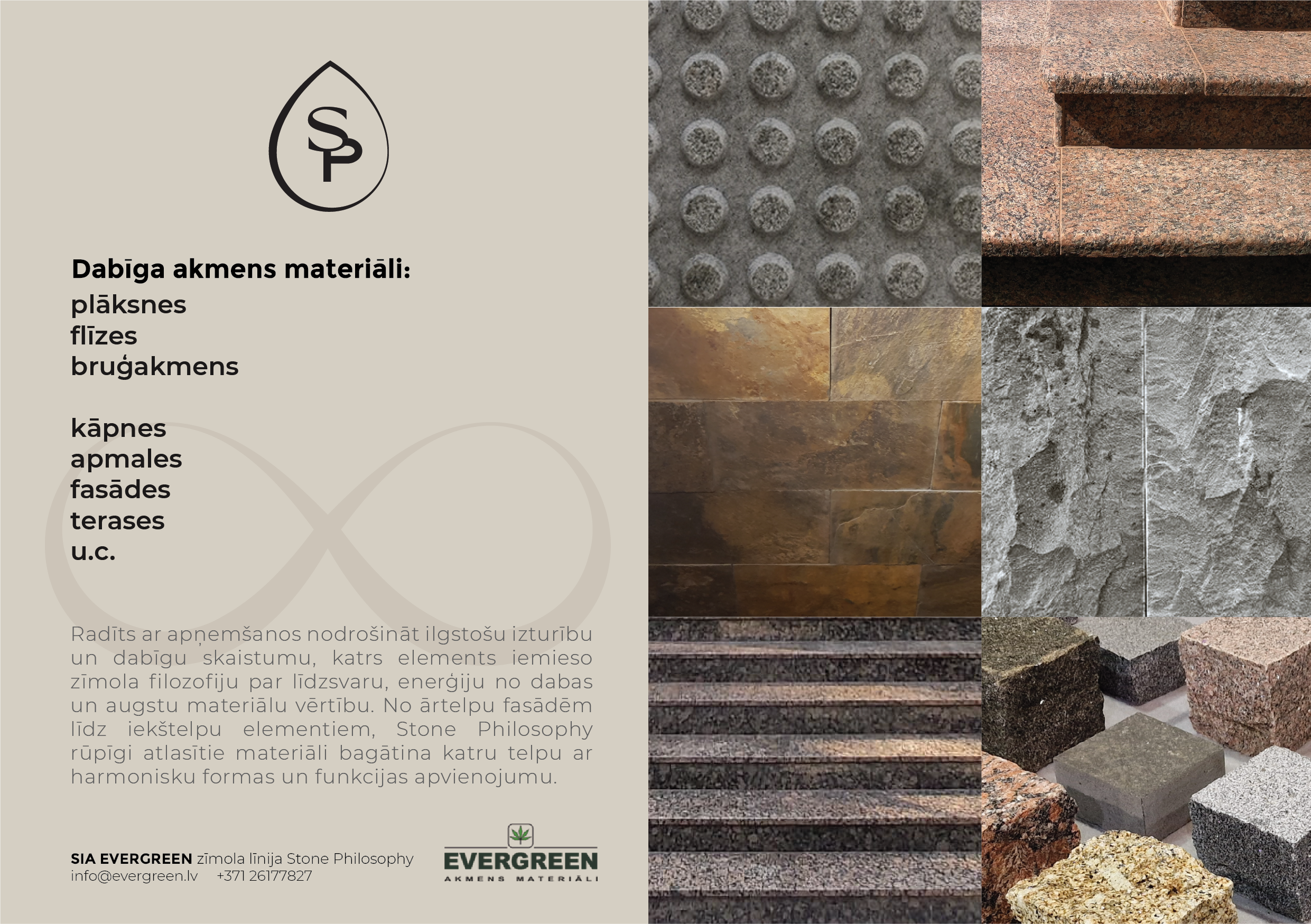 Evergreen radītie dabīga akmens materiāli `STONE PHILOSOPHY`